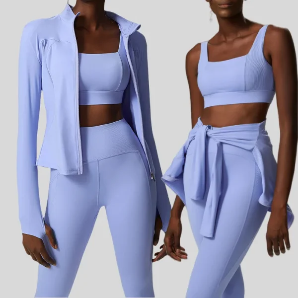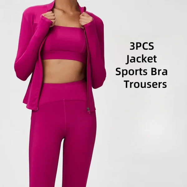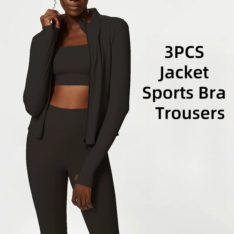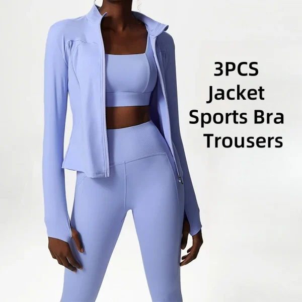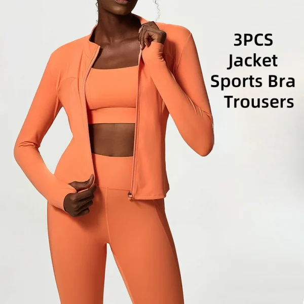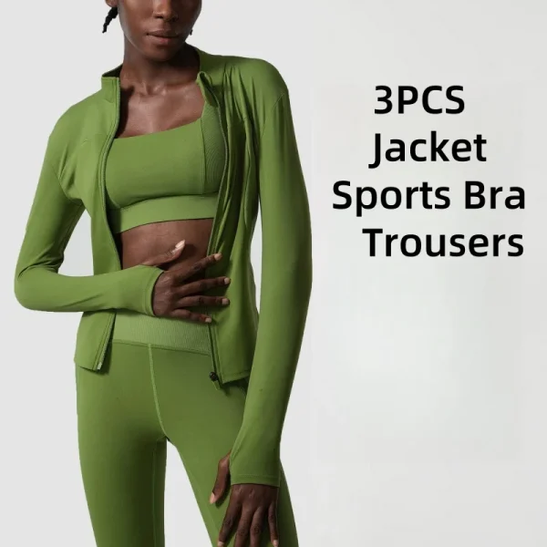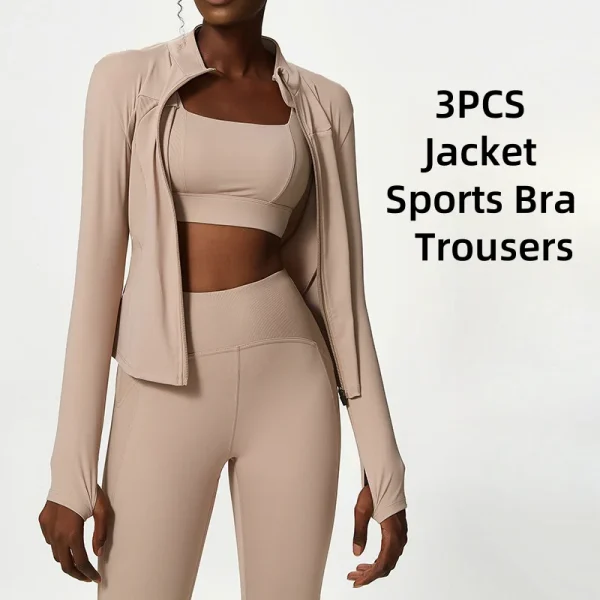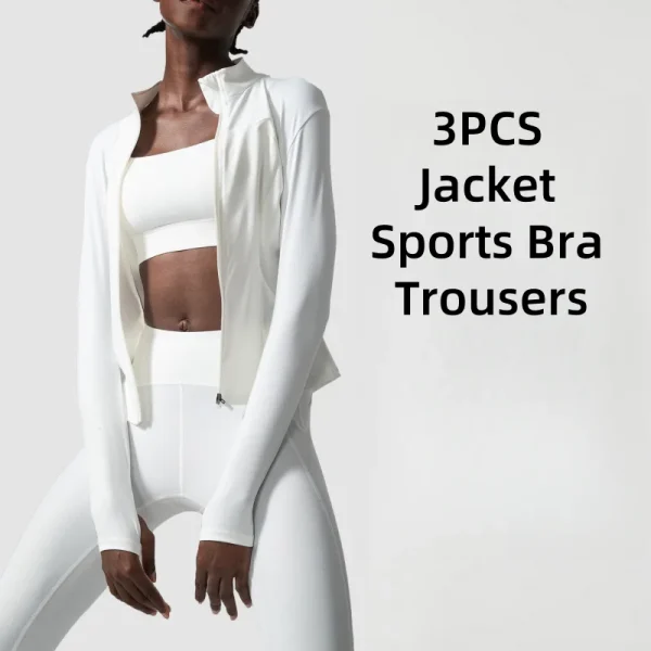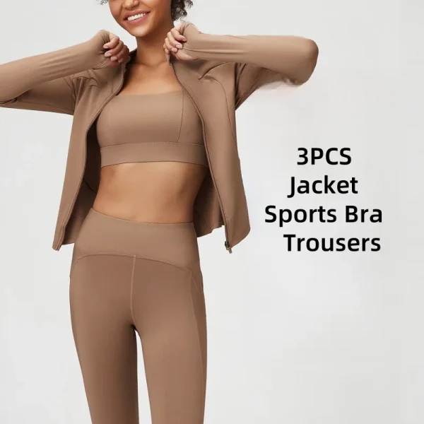 2/3 Pieces Solid Color Warm Stretch Athletic Fitness Legging Yoga Set Suit for Women Bra Zipper Jacket Female Workout Sportswear