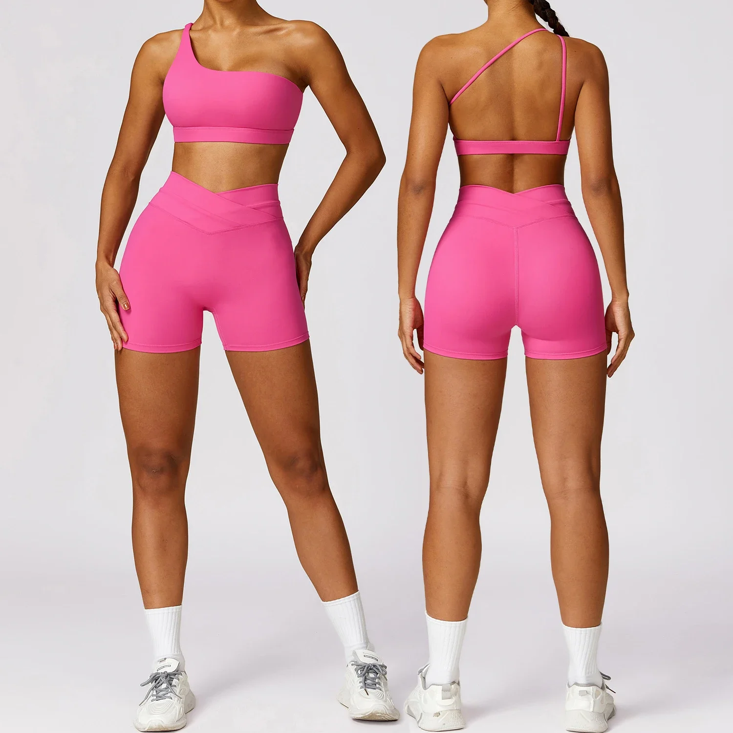 2 Piece Yoga Sets Quick Dry Woman Yoga Outfit Shorts One Shoulder Bras Sport Suit for Women Sportswear Fitness Gym Workout Sets