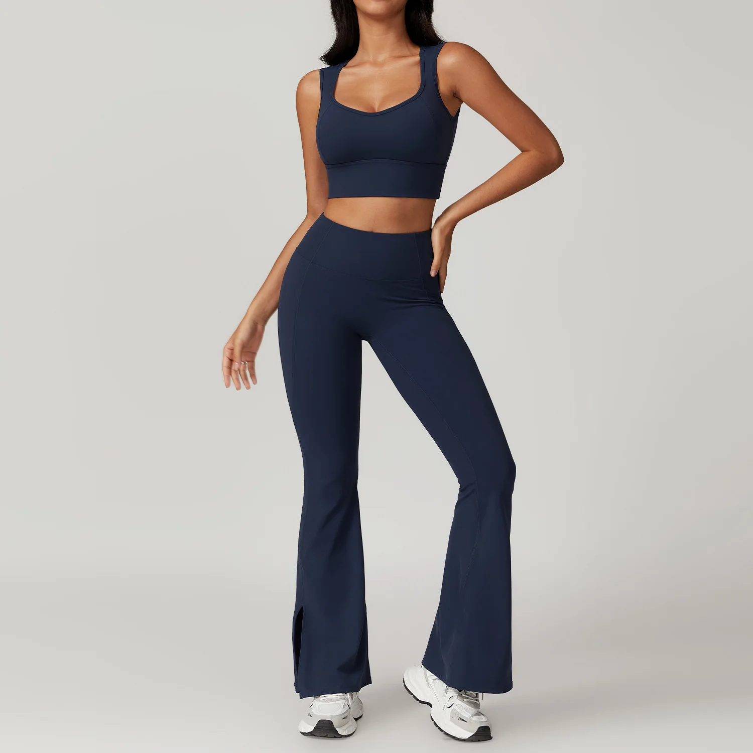 2 Pieces Women's Clothes Yoga Set Workout Tracksuit Sportswear Gym Clothing High Waist Bell-bottoms Sexy Fitness Bta Sports Suit quantity