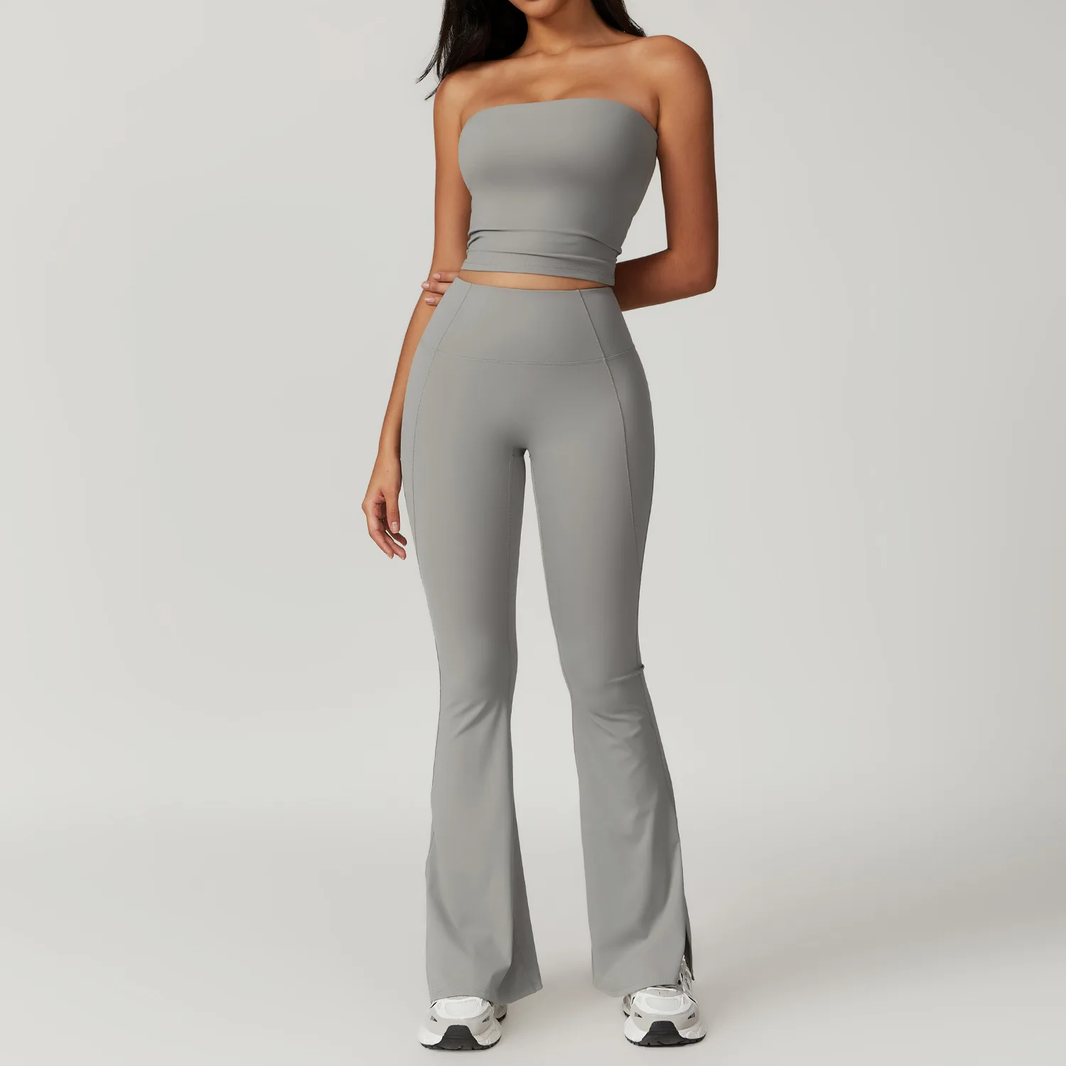 2 Pieces Women’s Clothes Yoga Set Workout Tracksuit Sportswear Gym Clothing High Waist Bell-bottoms Sexy Fitness Bta Sports Suit