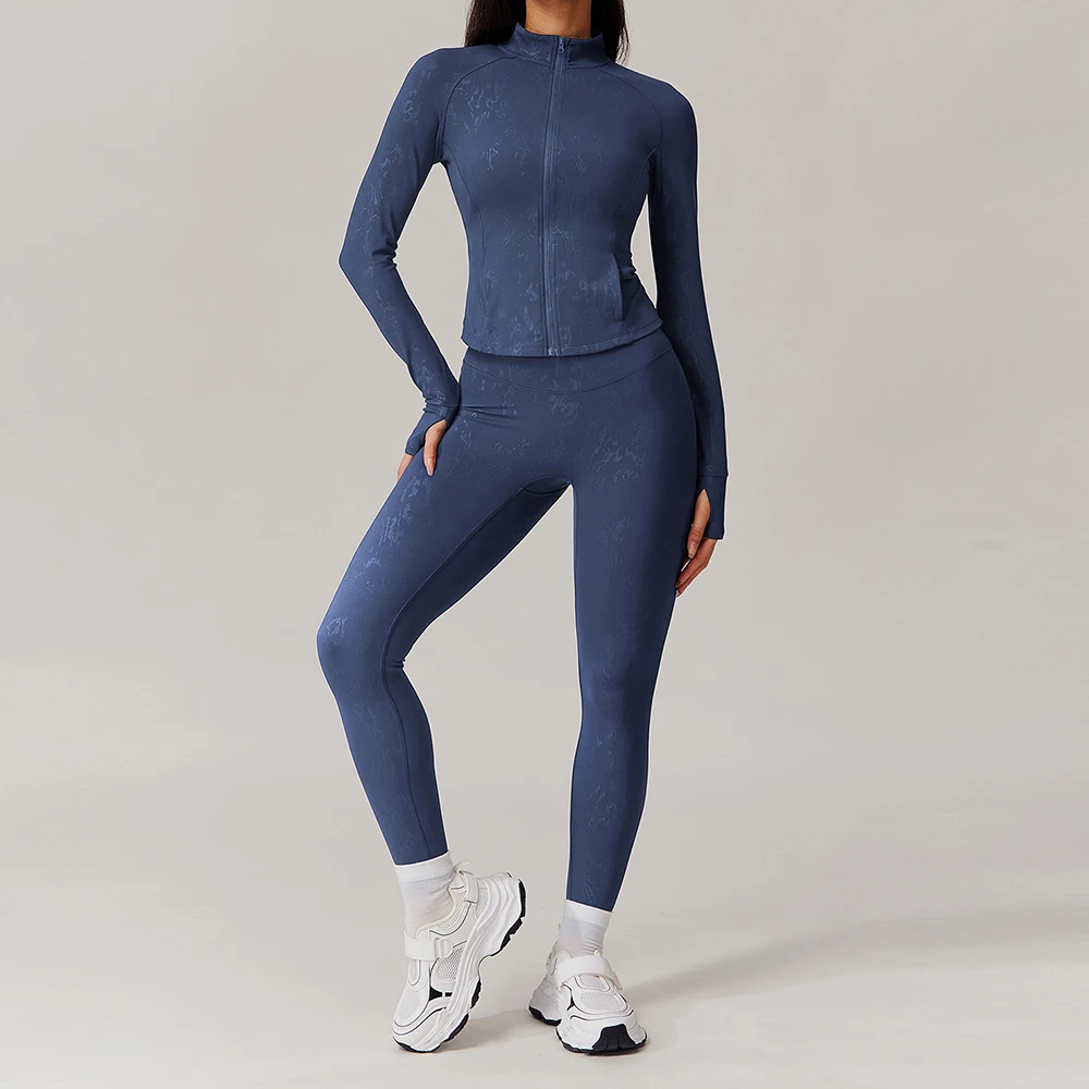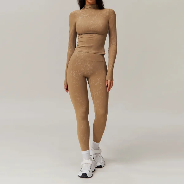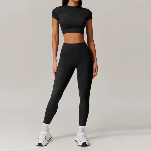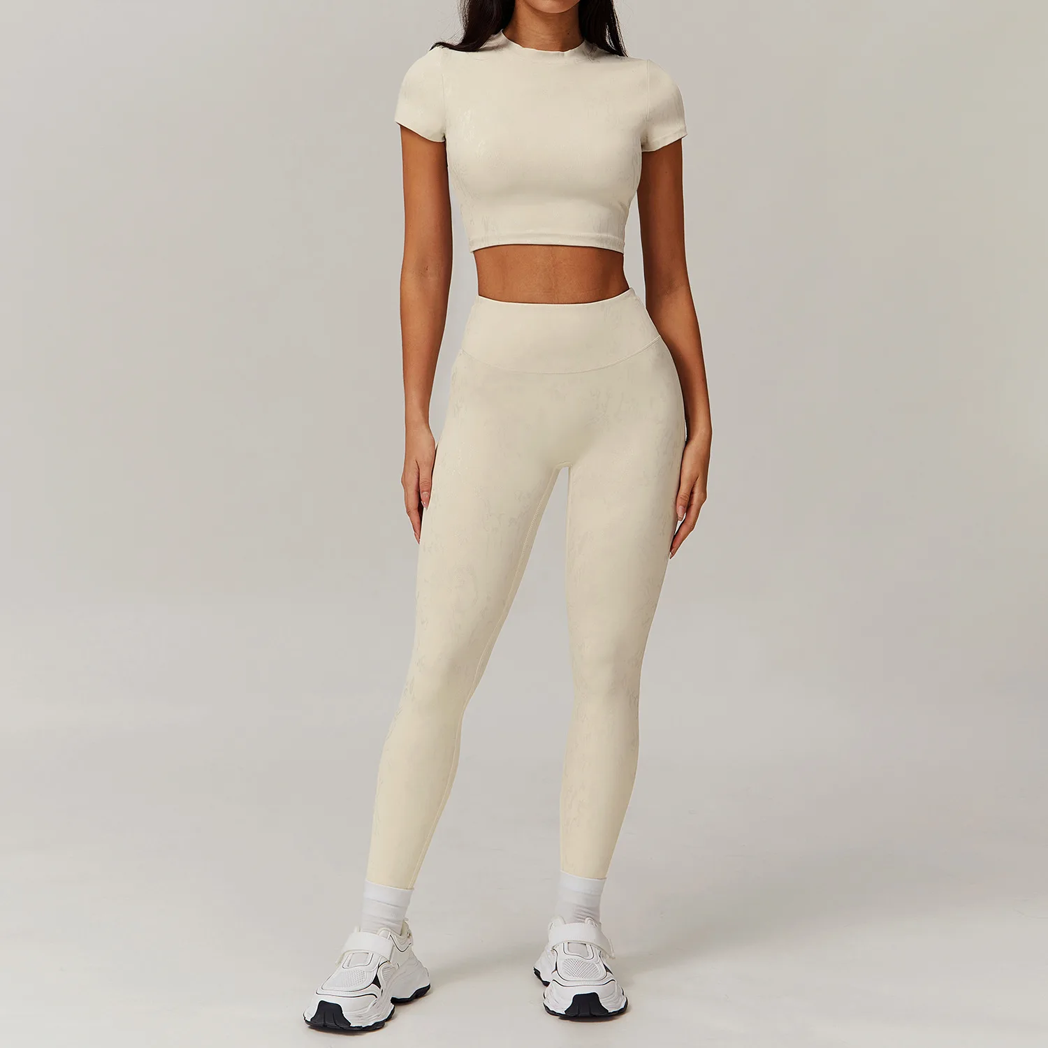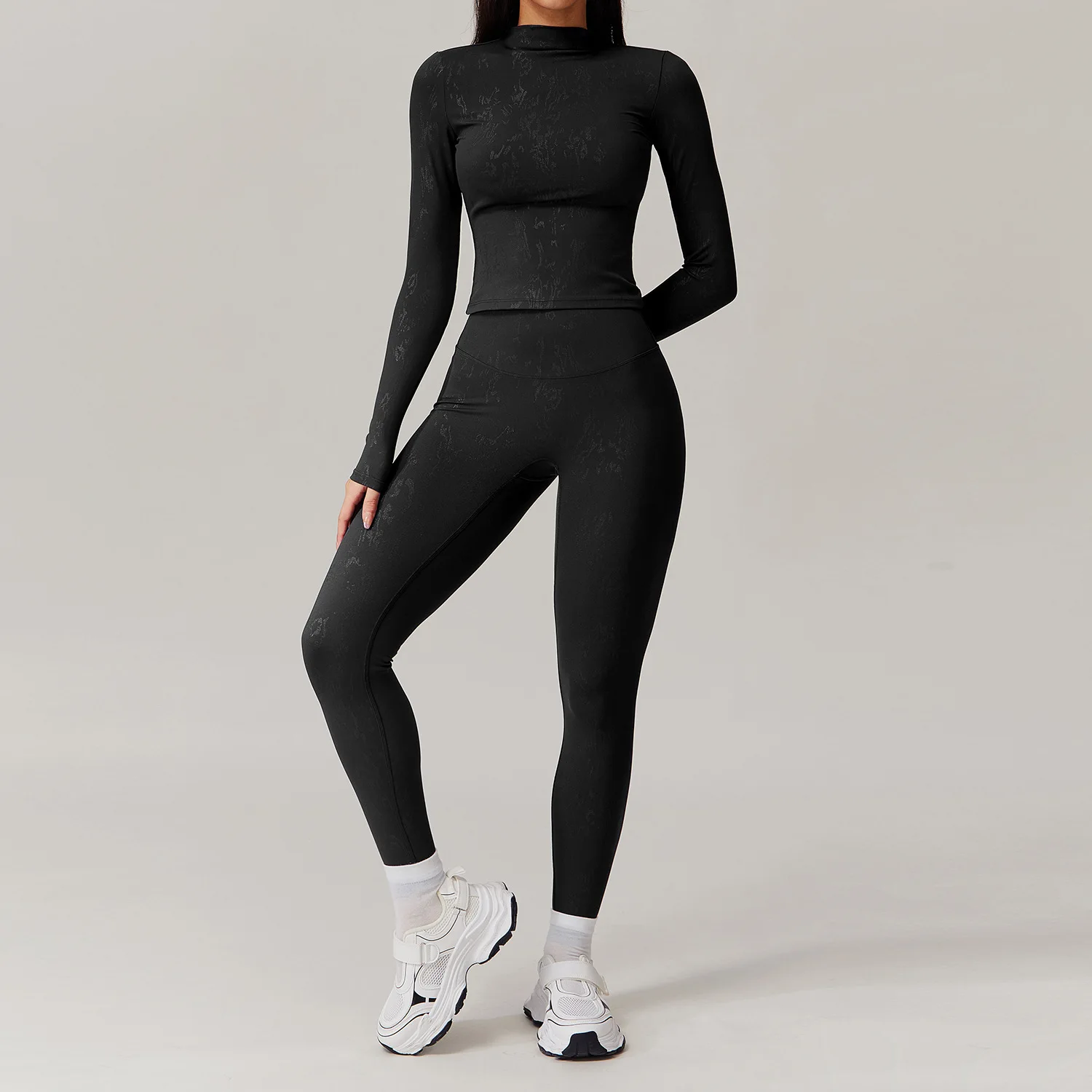 2PCS Yoga Set Women Gym Clothing Workout Set Sportswear Seamless Sports Suits Fitness Long Sleeve Crop Top High Waist Leggings