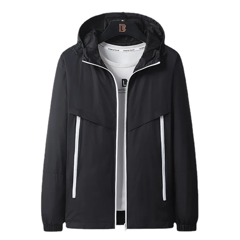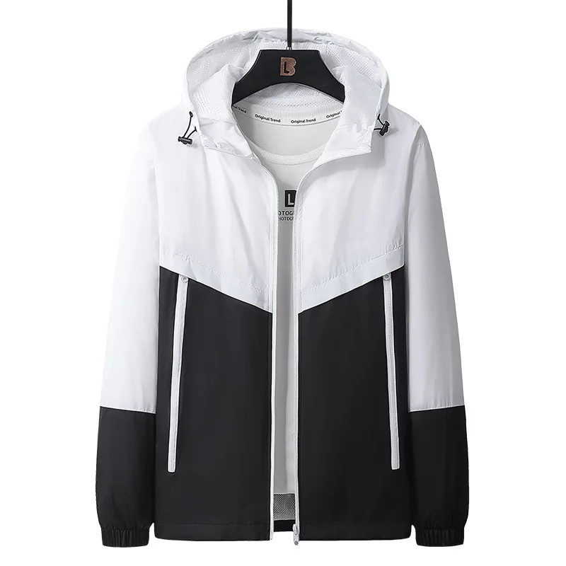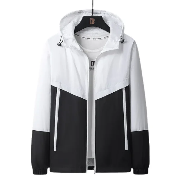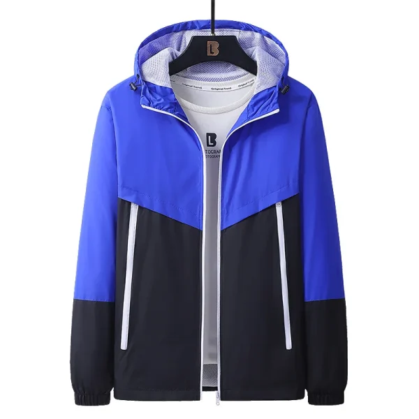 Color Blocked Sports Jacket Men’s Spring and Autumn New Fashion Short Style Outdoor Running Casual Hooded Jacket Cardigan