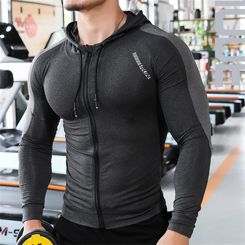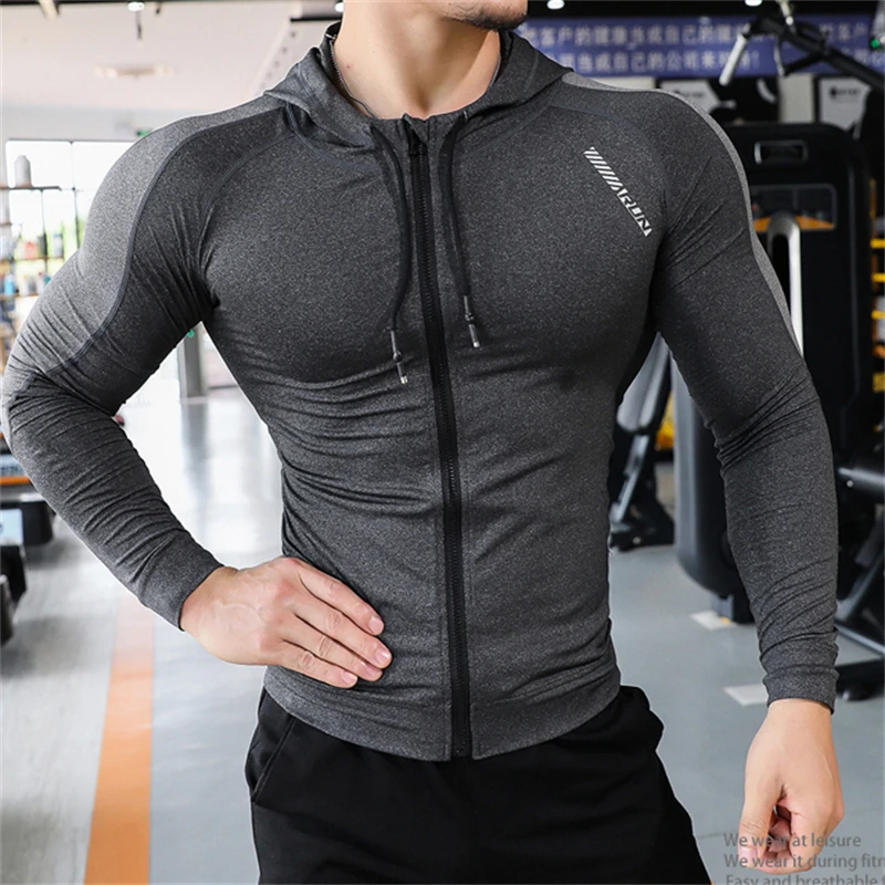 Men Compression Elastic Hoodies Gym Sport Running Training Fitness Sportswear Bodybuilding Sweatshirt Hooded Jacket Male Jackets