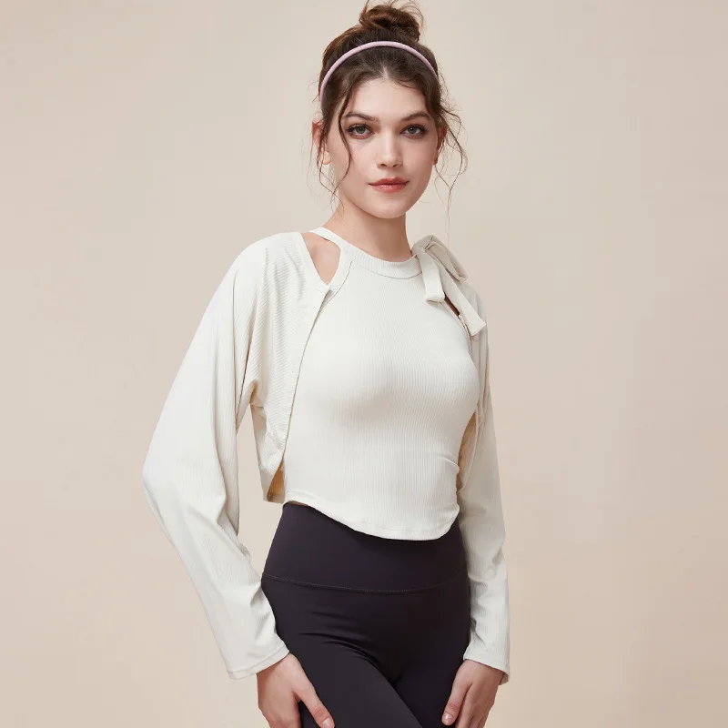 New Autumn Winter Short Jacket Without Zipper Women Gym Yoga Fitness High Elastic Coat Outdoor Workout Casual Sports Tops