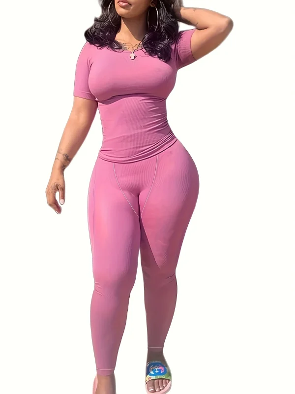 New style Lounge Wear Ribbed Casual 2 Piece Summer Shorts Set For Women Sleeve Top+Elastic Leggings Outfits