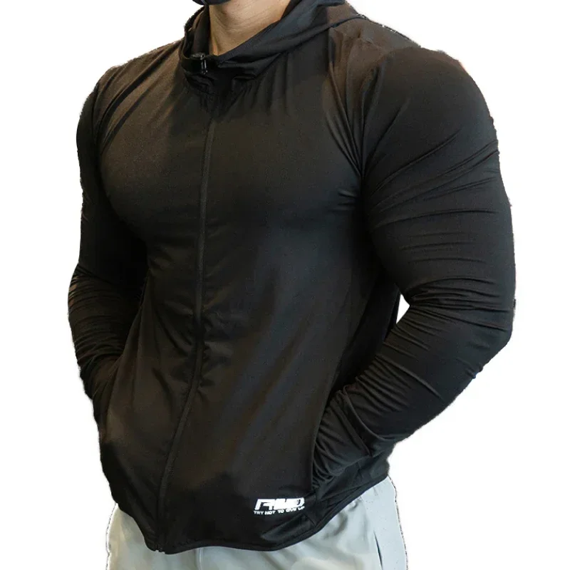 Outdoor sun protection suit, men’s thin quick drying long sleeved fitness and sports jacket, professional running and training s