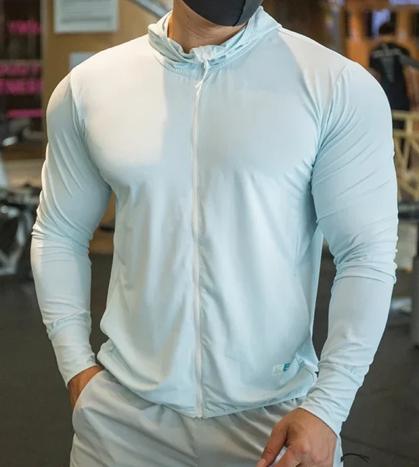 Men Ice Silk Quick Dry Hiking Basketball Running Jackets Hood Waterproof Fitness Gym Outdoor Sports Coats Windbreaker Hooded Top