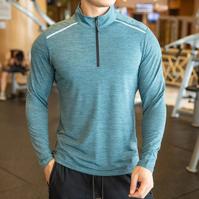 Quick Dry breathable Running Shirt Men Bodybuilding Sport T-shirt Long Sleeve Gym Fitness zipper stand collar Autumn winter