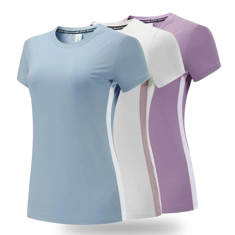 (S-2XL)Women Quick Dry Ice Silk Sport T-shirt Breathable Yoga Tees Shirts Gym Workout Running Short Sleeve Fitness Tops MM715