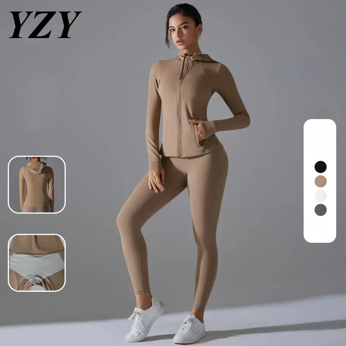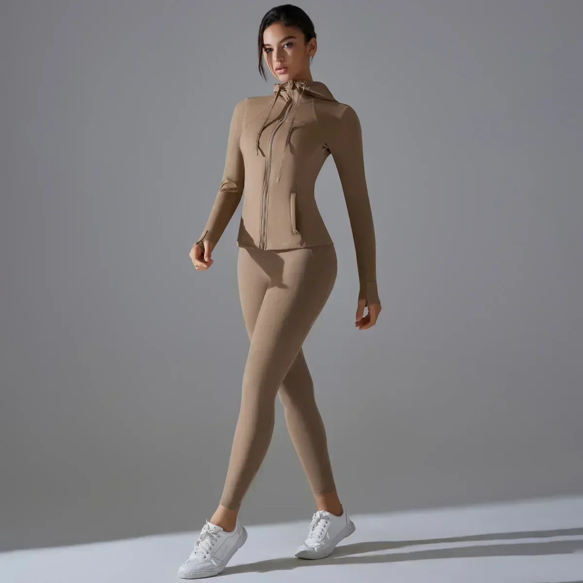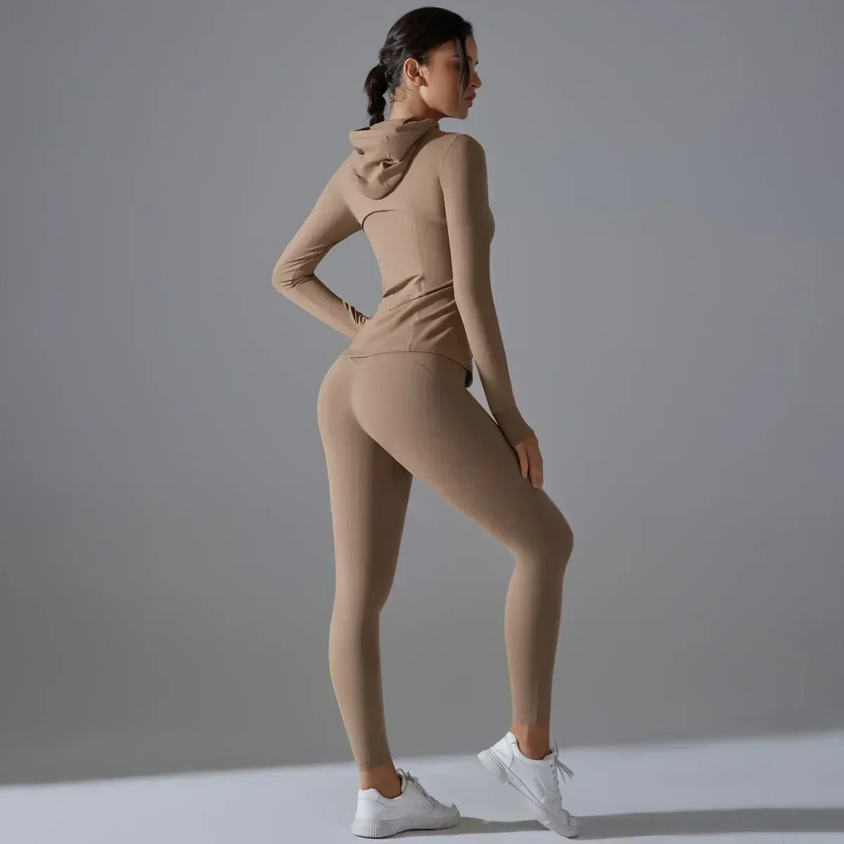 Seamless Yoga Sports Fitness Hip-lifting Skinny Long-sleeved Hoodie Zipper Winter Workout Gym Leggings Sportswear for Women