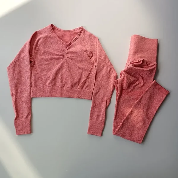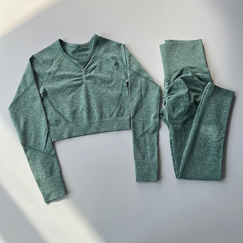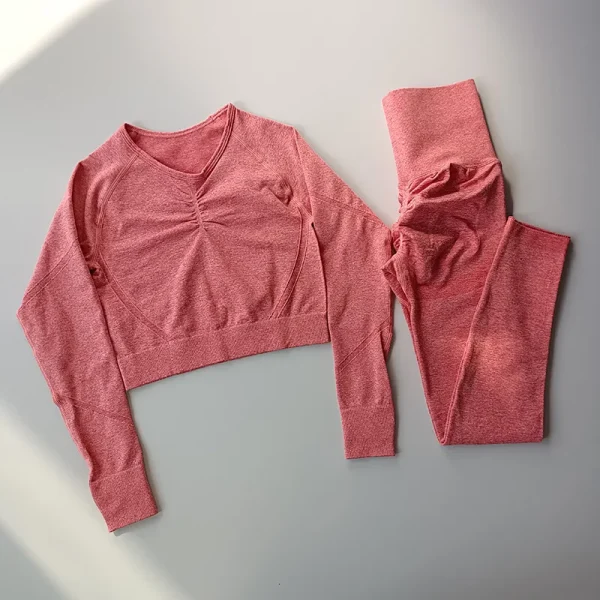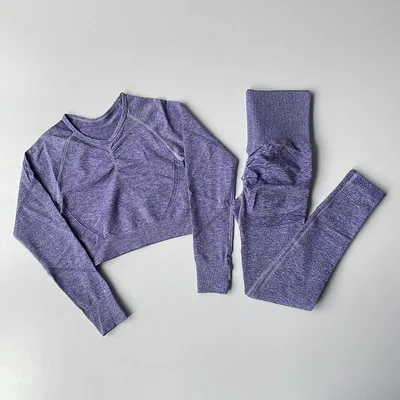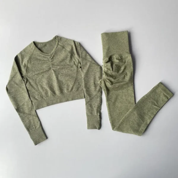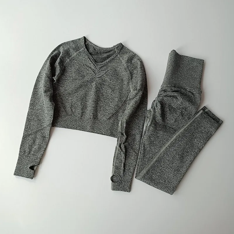 Seamless Yoga Suit for Women Hip Lifting Leggings Pant Sets Skinny Stretch Fitness T-Shirt Sets Running Outdoors Long Underwear