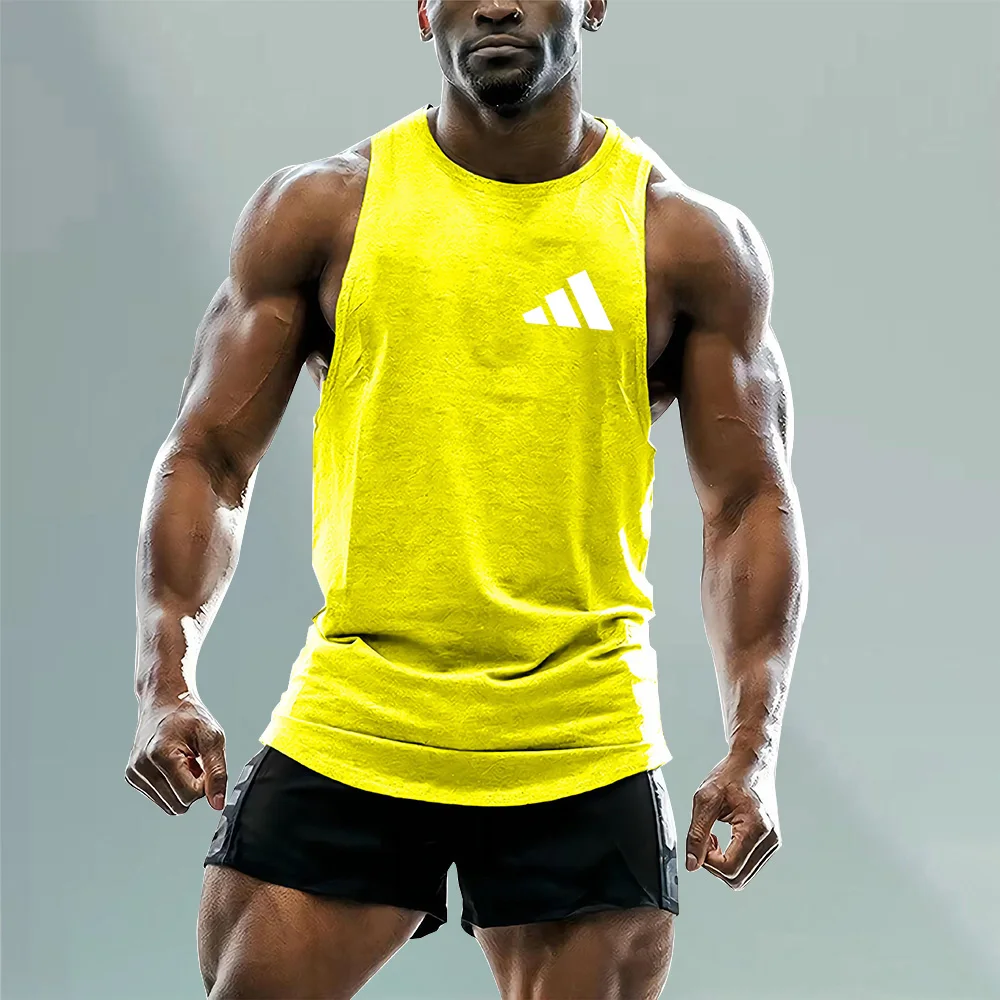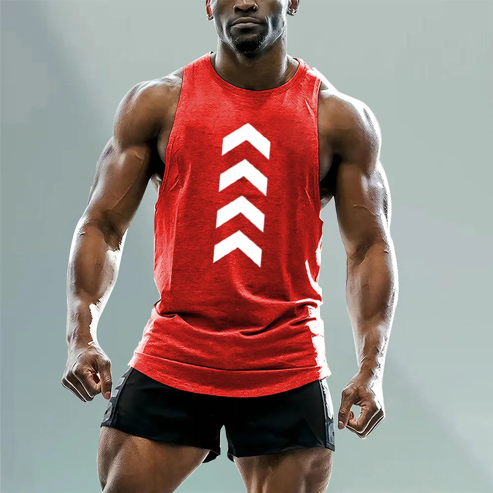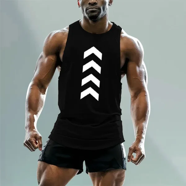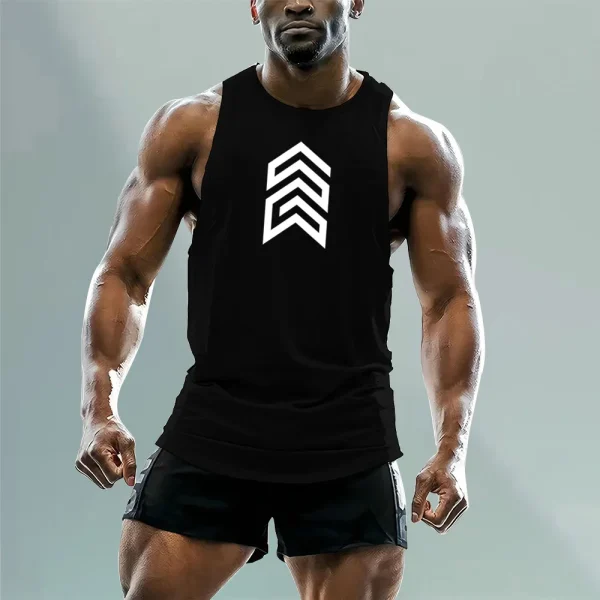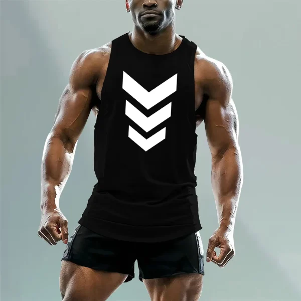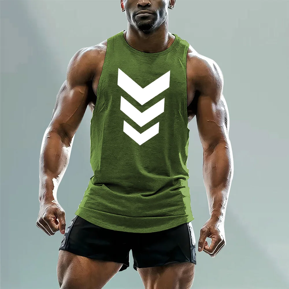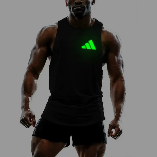 Simple three stripes fluorescent printed summer fitness crewneck top breathable fashion men vest fitness lifting iron body shirt
