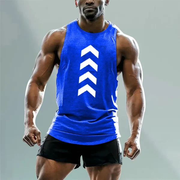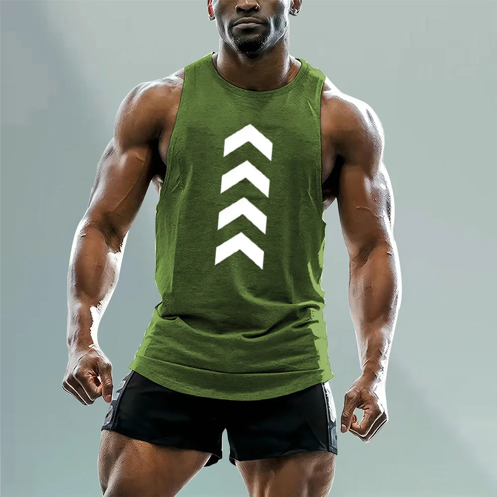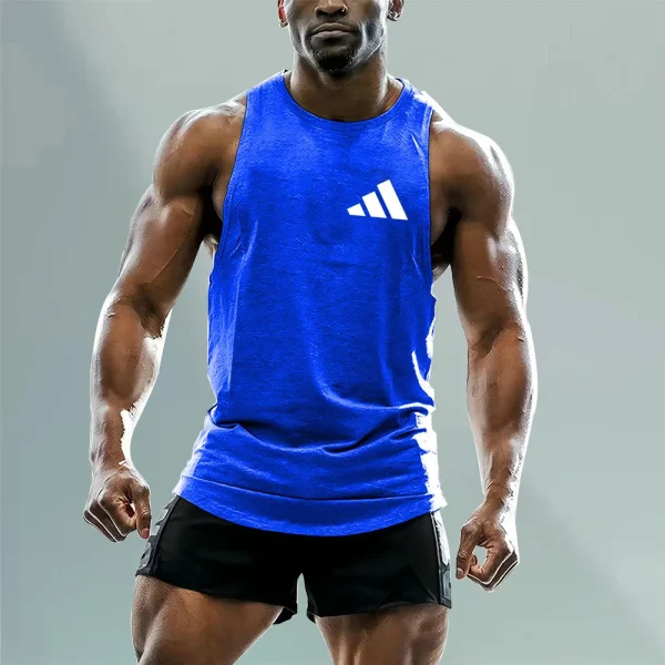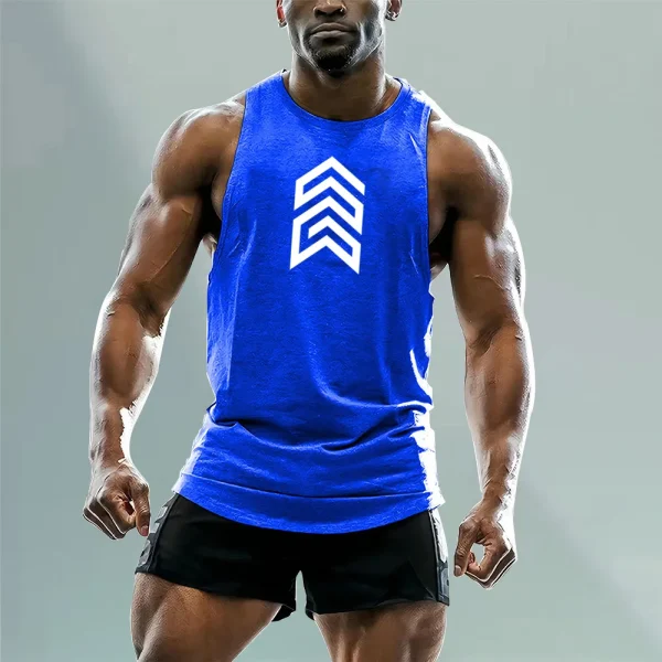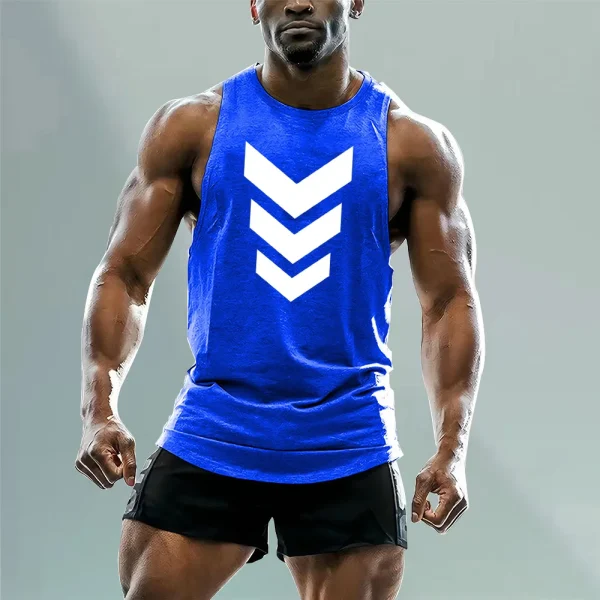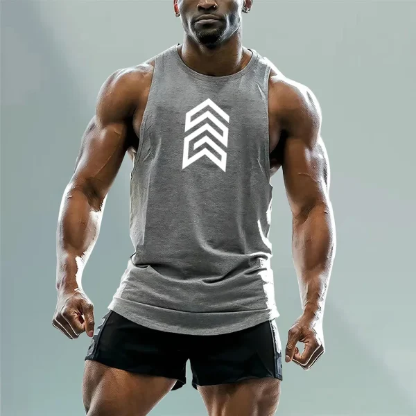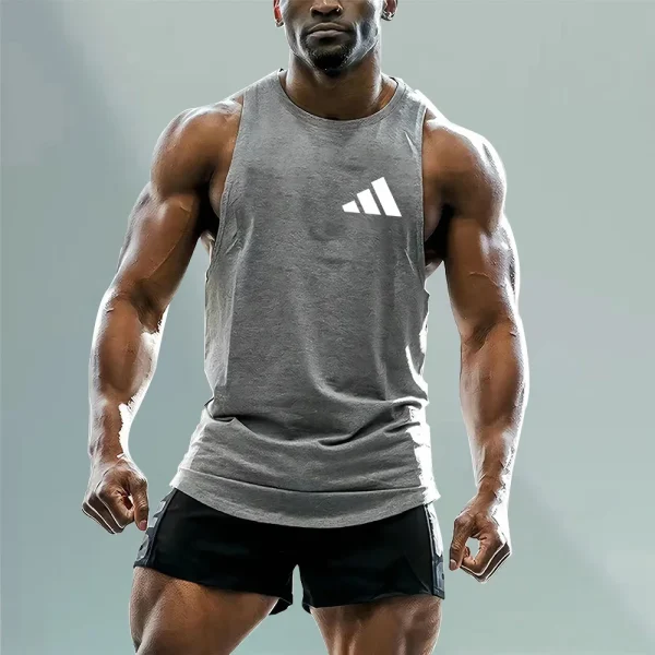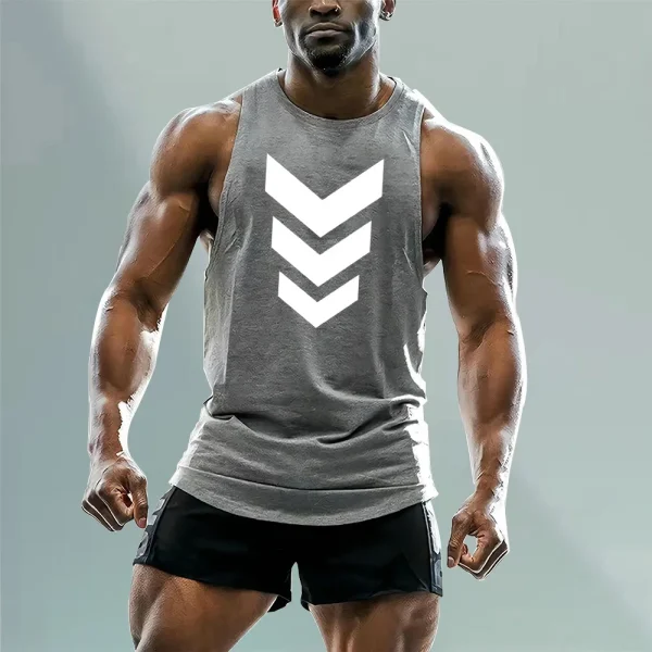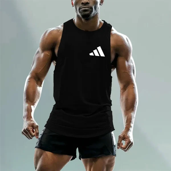 Simple three stripes fluorescent printed summer fitness crewneck top breathable fashion men vest fitness lifting iron body shirt