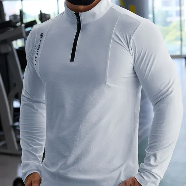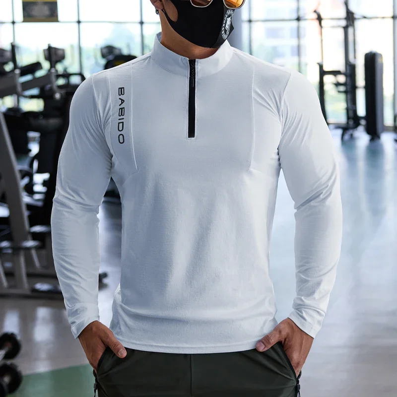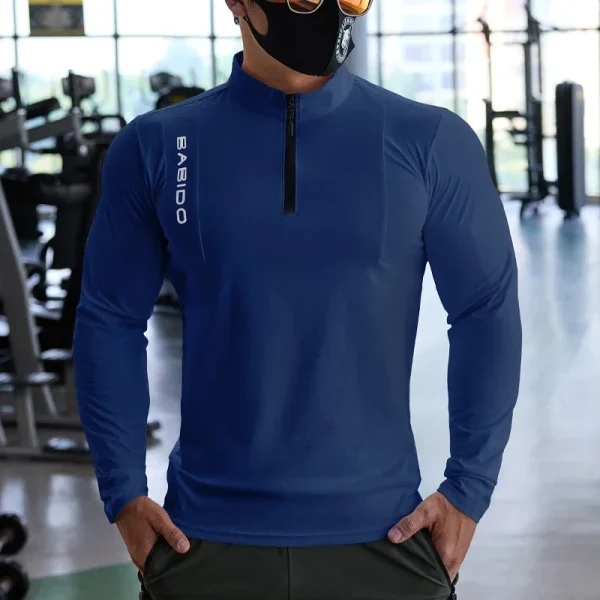 Sports Fitness Long-Sleeved Men Fall Stretchy Quick-Dry Running Gym Training Clothes Slim Zipper Baseball Tennis Sports Tops