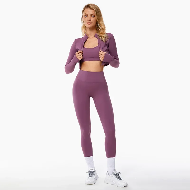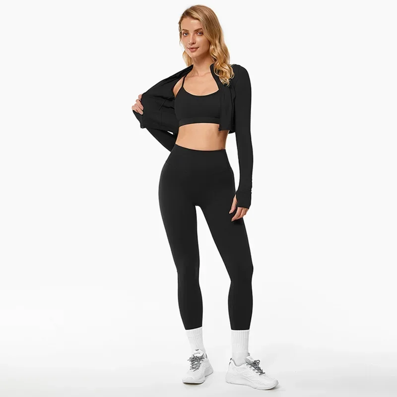 Sports Leggings Suit Yoga Set Workout Fitness Outfits Women Seamless Sportswear 3 Piece Gym Fitness Clothing Active Wear