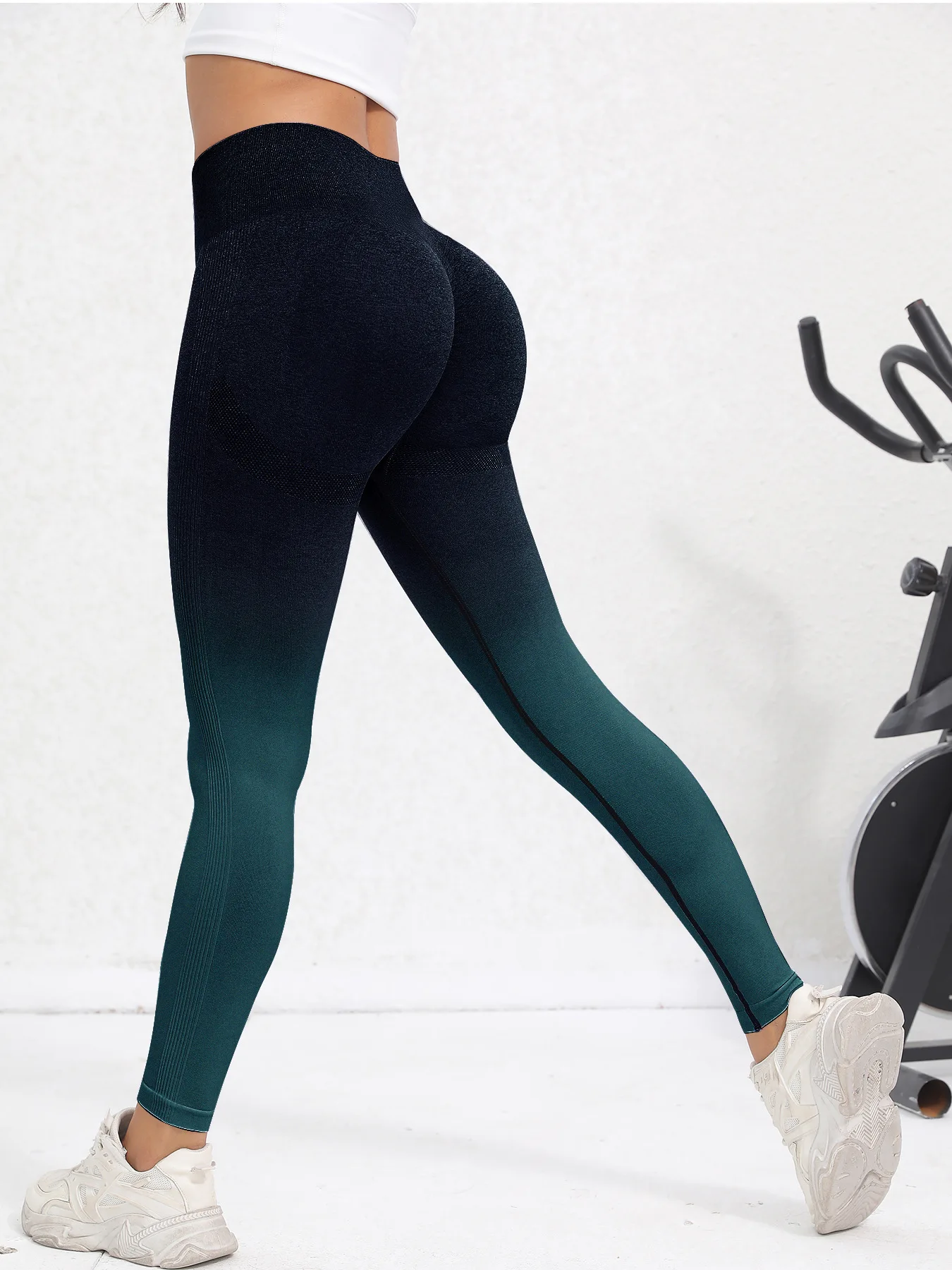 Women Gradients Seamless Leggings High Waist Leggings Slim Hip Liftting Fitness Pants High Elastic Fashion Gym Workout Tights