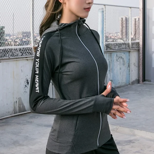 Women Hoodie Running Jackets Zipper Yoga Coat Sportwear Jacket Thumb Hole Yoga Jacket Zipper Jacket Fitness Sport Clothing Top