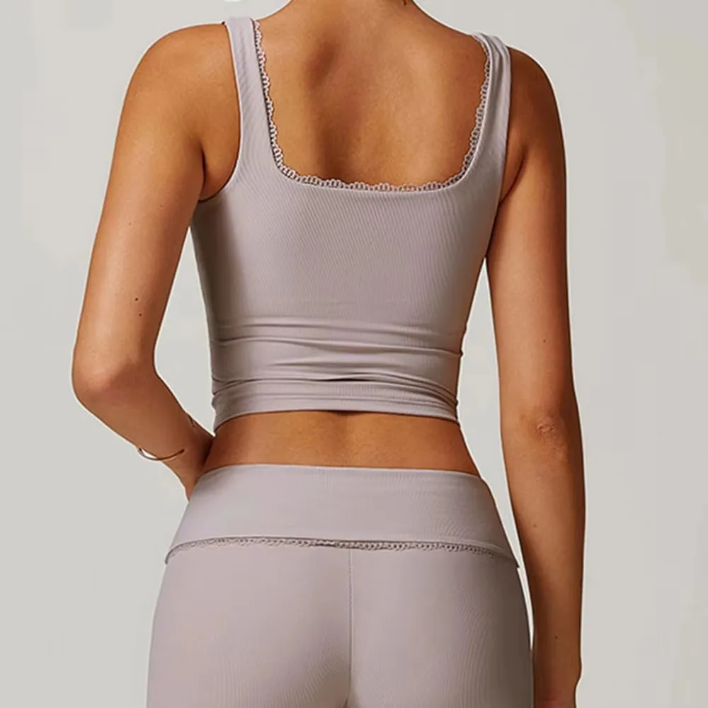 Women Yoga Vest Sports Bra Lace Shockproof Padded Gym Push Up Running Fitness High Strength Yoga Sports Bra Workout Underwear
