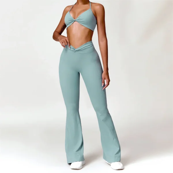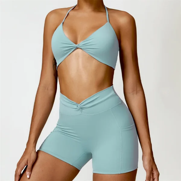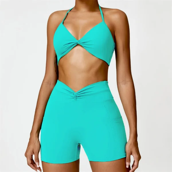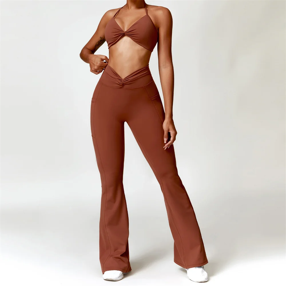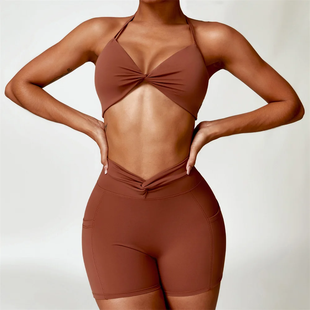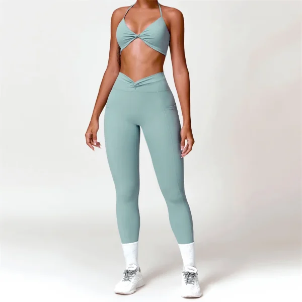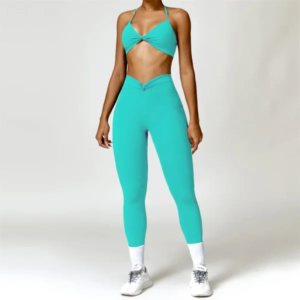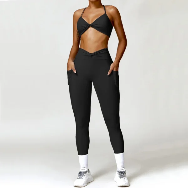 XS-XL 1/2PCS Fitness Twist Sport Bra Yoga Set Women High Waist Workout Pocket Leggings Female Pant Tracksuit Gym Active Suits